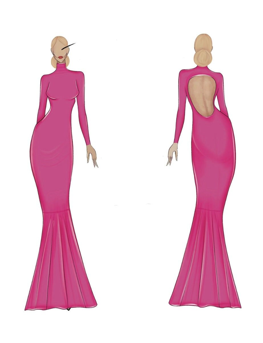 Long Open Back Dress With Long Sleeves Pdf Sewing Pattern Etsy